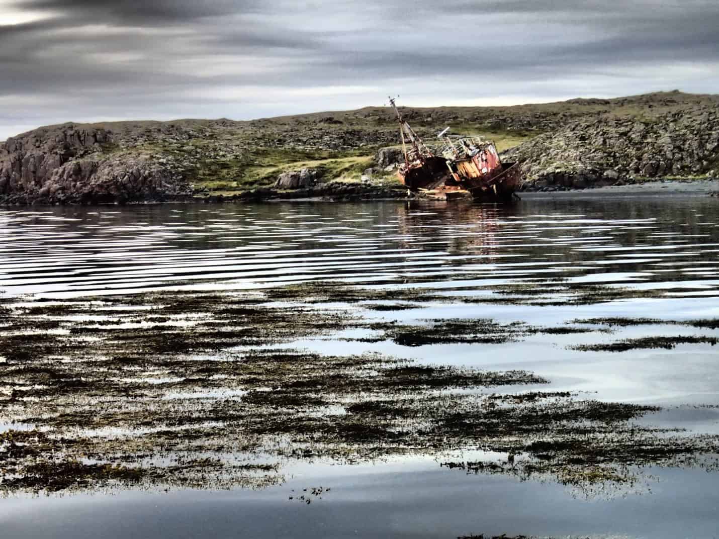 The Westfjords area, both before and after our stop at Garðar, was beautiful. The winding roads along the coast was stunning. Most of the roads are easy to drive; only a few times did some of the curves get a little dicey, but we just took it slow. Somewhere along Route 54, we saw another beached ship in the water. It was accessible off an old farm drive and a walk. There was another car there so we checked it out too. We couldn’t get as close as we could to Garðar but it was still interesting to see it just lying there half sunk in the water.