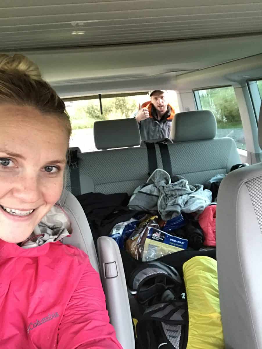 To save time and money, we flew in enough freeze-dried meals for both of us, two meals a day. This worked out great with the camp stove and supplies that came with our camper van. It was really convenient to have the large water jug that came with the camper van too because all we needed was water for our meals.