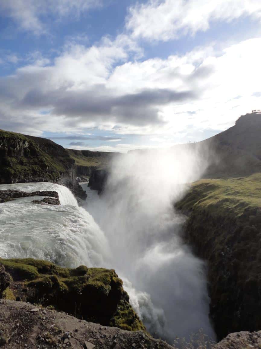 As well as the ride onto the greatest waterfall we saw so far. They called it the Gullfoss. The name seemed to emanate from the pot of gold said to lie at the end of the rainbow which shimmered above the waterfall. Plenty of my colleagues were smashed into the narrow canyon generating thick clouds of aqueous vapour which rose from the depth. I was in heaven.