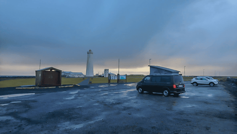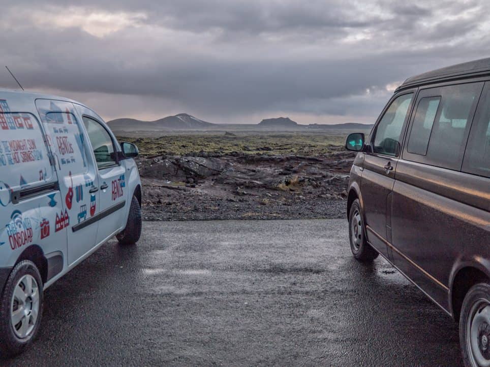 The first thing we did, was to go to the Blue Lagoon, which also happened to be the only place we’d heard off. Who would have guessed that the most touristy thing in Iceland would require a booking in advance? Not us. Luckily, our van was so good we didn’t mind. We just stopped along the road, unpacked our chairs and prepared our dinner on the gas cooker and enjoyed our first Icelandic sunset.