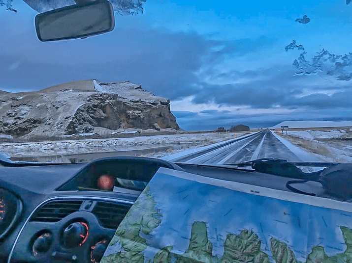 Another downfall of our group was that we weren’t checking the weather forecast, which our medicine student started doing halfway into the trip. So we had to discuss again whether we wanted do the whole Ring Road or turn back, because a big storm was due to hit the North, beyond the wall. We considered turning back, because of unpredictable weather, lack of daylight, snowy roads, strong winds and the wish to see everything. In the end, we decided to continue on our quest, so we headed further North. Surprise surprise, for the 2nd day in a row we couldn’t reach our destination because of the weather. This time because of a snow storm and previously due to strong winds.