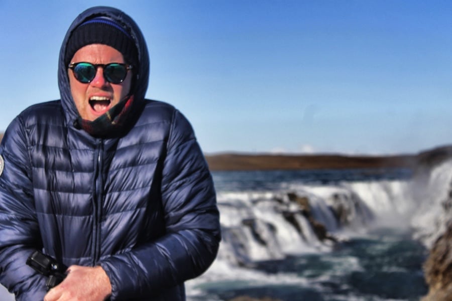 Gullfoss – the coldest place in Iceland. We actually got a little bit frost burnt as we went up to check out this waterfall. The ice spray that was coming off the falls actually smashed our faces. It is worth a look though.
