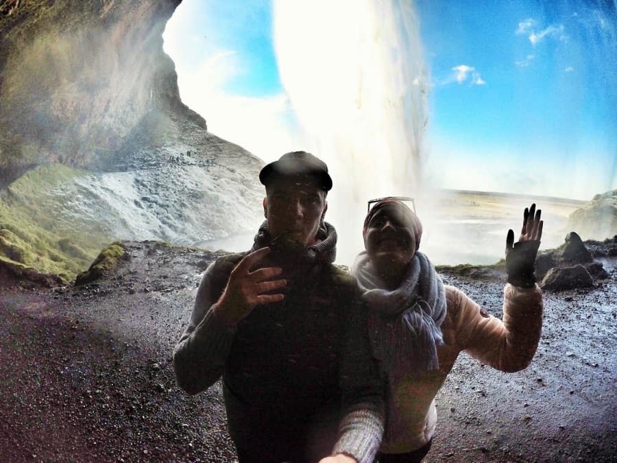No choice but to get wet through our walk behind Seljalandsfoss.