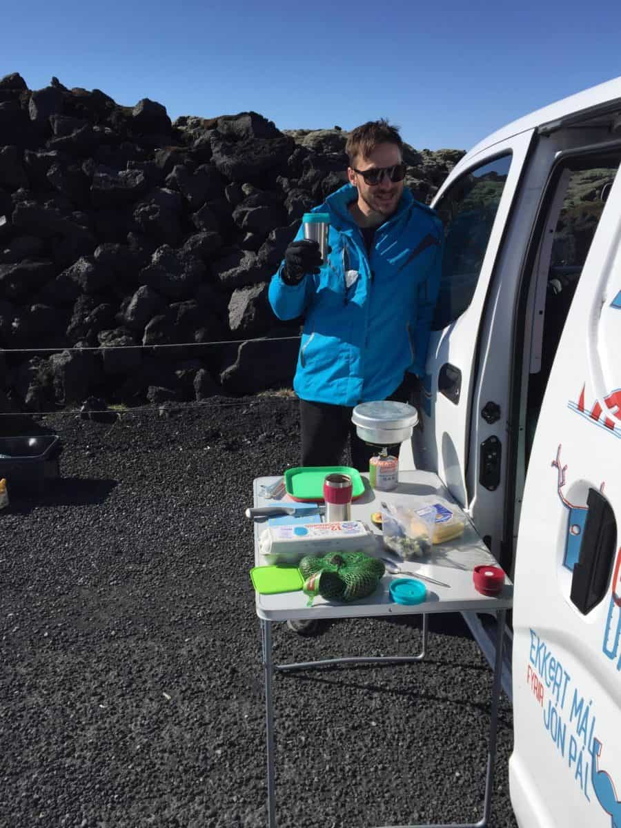 One final tip! If you plan on using the ‘outside fridge’, that is, putting your cold items outside overnight (so as not to drain battery by having the fridge on), don’t move the car after you put the stuff out! I of course ran over a brand new carton of milk and four eggs one night!? So, including the food we pre-purchased, we spent around 27,000 krónur. Oh, and if you want to buy a cafe coffee at any stage to supplement your diet, you’ll be looking at 500-600 krónur on average.