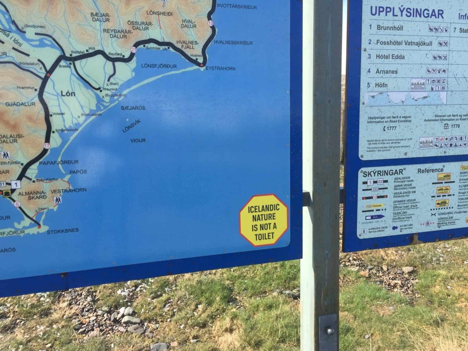 Are you prepared to spend a lot of time trying to find a suitable campsite that is out of view of the main road and that has shelter? If you are sticking to the Ring road, you will find that most areas that may seem suitable for a place to spend the night have very prominent and obvious signs that state camping is prohibited; plus, these areas rarely have the shelter from the wind that you will crave. Are you prepared to leave no trace of your stay if you do not use an official campsite? Think no toilets, no rubbish bins.