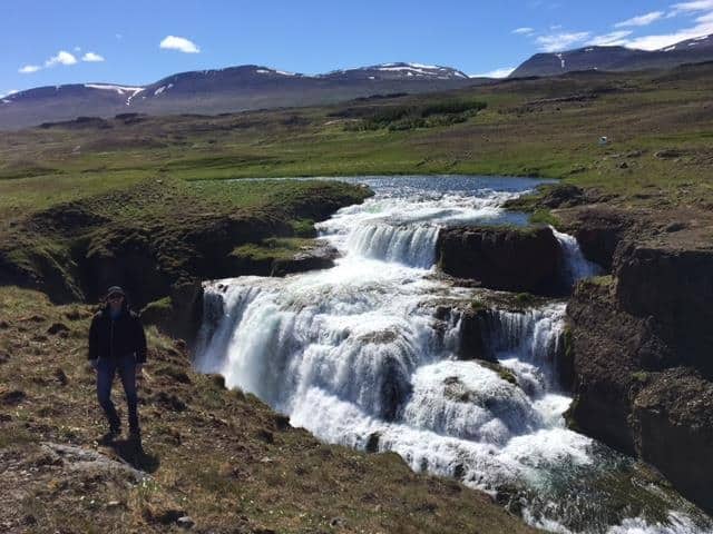 We ate lunch at the waterfall and watched the arctic terns nesting in the meadow behind us. After lunch we drove out of the Westfjords along more stunning roads stopping to make a coffee every hour or so.