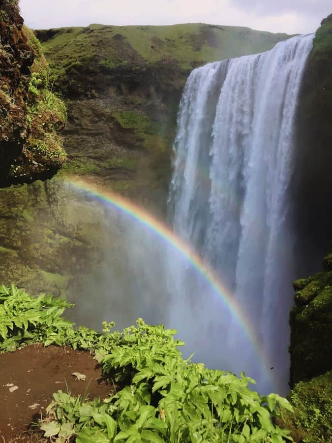 1. Skógafoss: Skógafoss is a waterfall located in the south of Iceland, en route to the famous town of Vik. Although I was amazed by all of the waterfalls I saw in Iceland, this one was my favorite. You could view the waterfall from three different angles (from the ground, from a rock at eye-level, and at a platform above the fall). If you’re lucky like we were and the sun is shining while you’re visiting, the mist from the waterfall creates a seemingly magical rainbow. It was breathtaking!