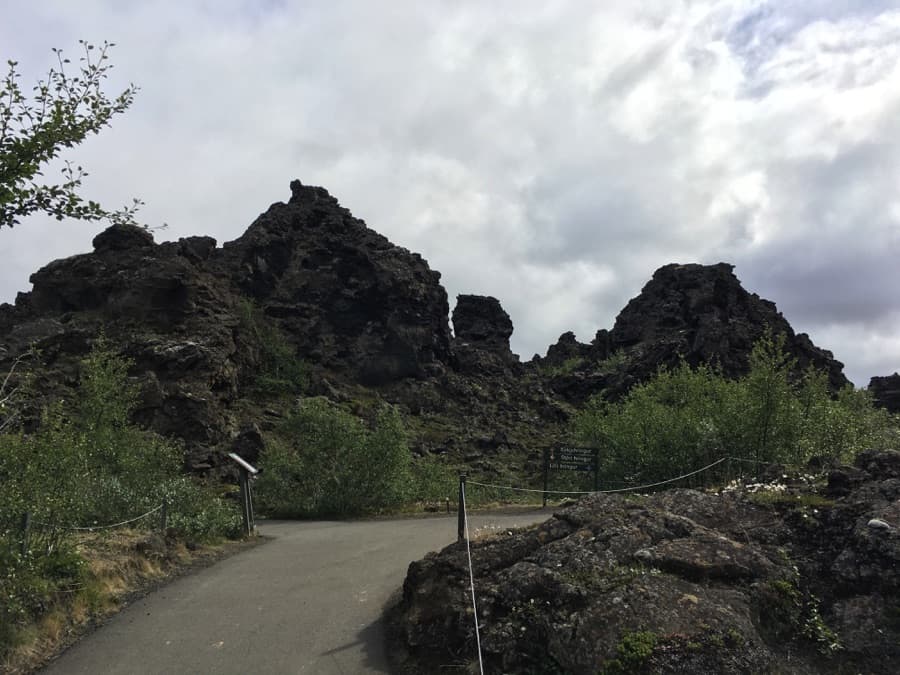 On the way, we stopped at Goðafoss, the waterfall of the gods and one of the most spectacular waterfalls in Iceland. And the truth is that the water of the river Skjálfandafljót falls from a height of 12 meters over a width of 30 meters! Wow!Lake Mývatn – Dimmuborgir – Kverfjall – Grjótagjá – Viti