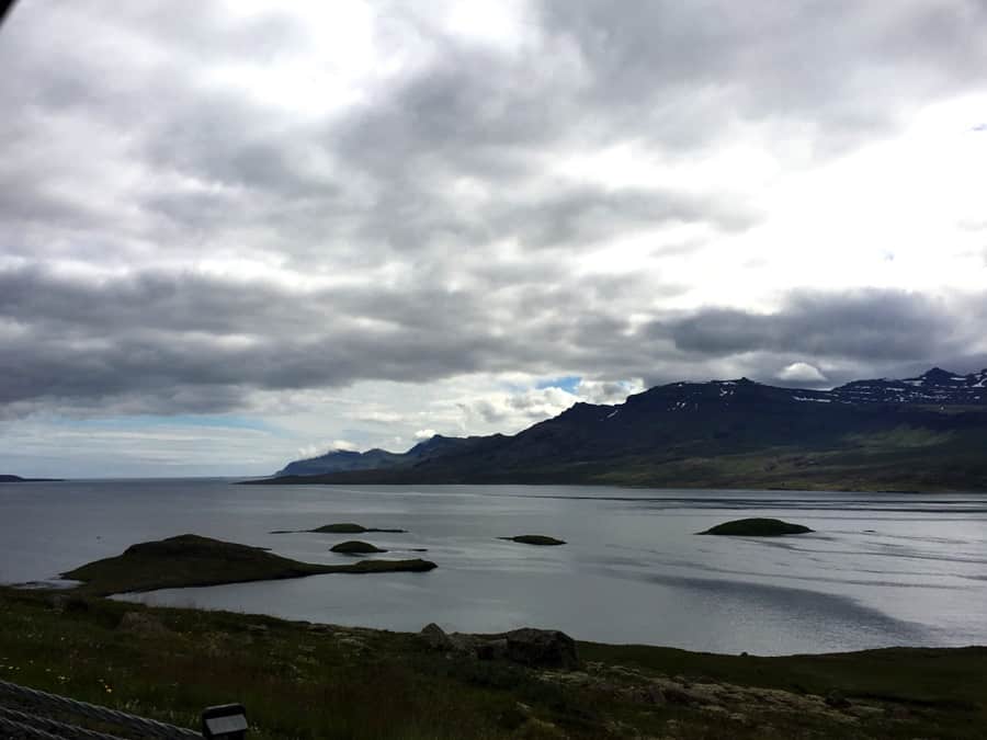 After having breakfast in the kitchen of the campsite, we drove towards the eastern fjords. To do this, we had to go back to Egilsstaðir and from there, we started driving down toward Reyðarfjörður and turn left to Eskifjörður. Then we continued down the south side of Reyðarfjörður. We didn’t meet any cars on the whole ride. We were completely alone and we loved this feeling. In our city, Barcelona, this doesn’t happen often!!!