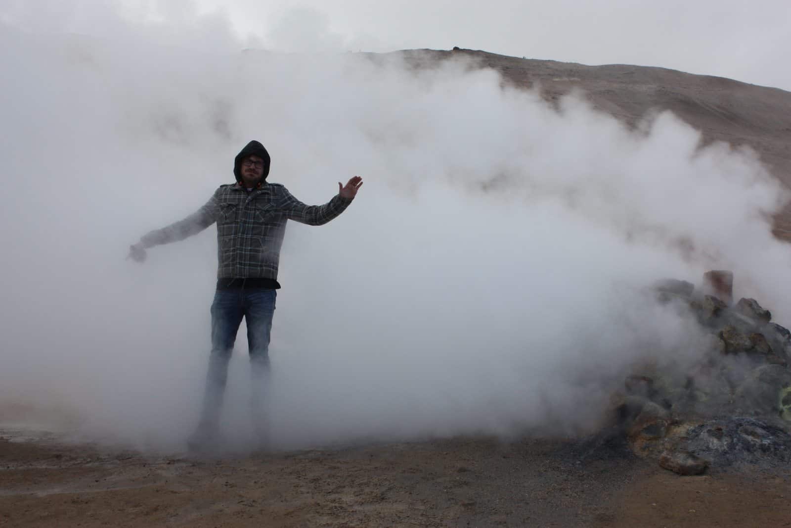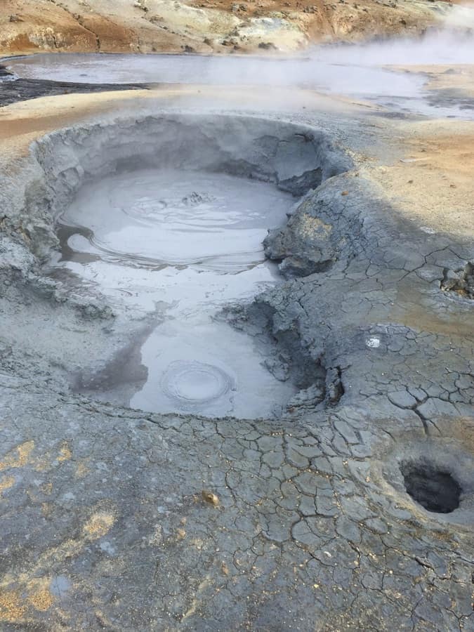 After having a pizza in a small restaurant close to it, we drove to the volcanic crater of Hverarönd. Small lakes of boiling gray mud bubbles, and columns of smoke very smelly are coming every minute. A spectacular exhibition of the force of the earth.