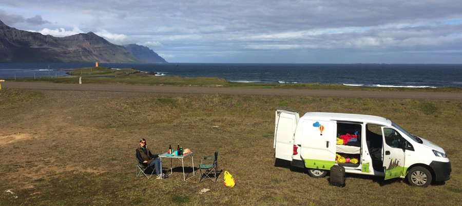 We arrived at the campsite about 9 o’clock in the evening and we decided to have a drink outdoors, so we prepared the table and the camping chairs, with a few beers and snacks, and started to draw our route for the next day.Skagaströnd – Kálfshamarsvík – Varmahlíð – Akureyri