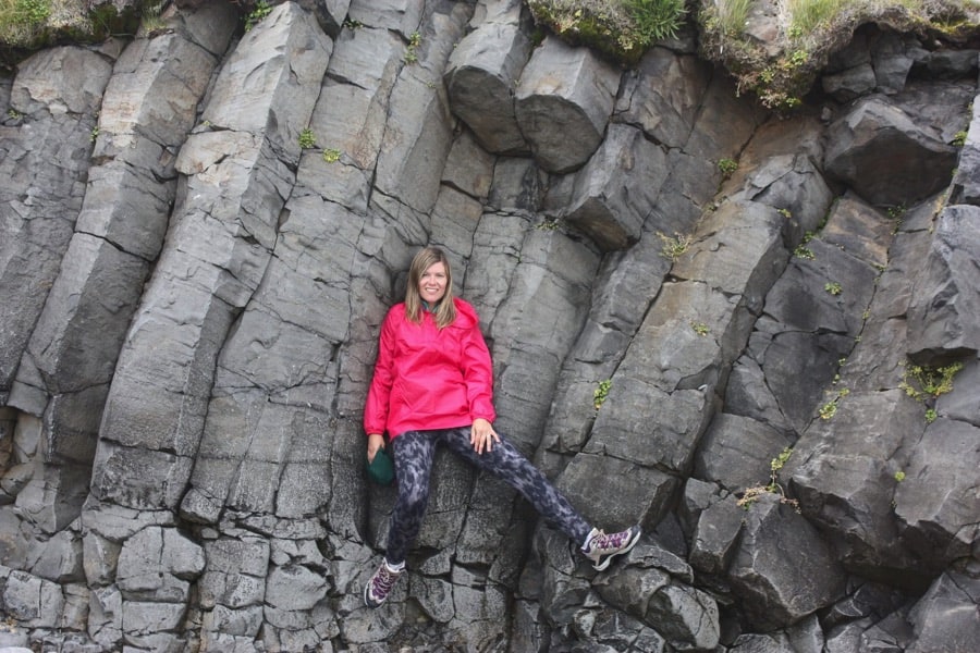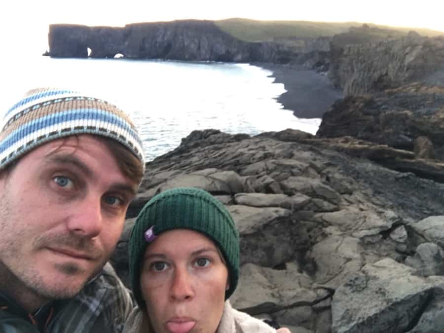 On the way we pass a small village called Kirkjubæjarklaustur that has a swimming pool. Although temperature is rather low and it’s raining, we want to have a bath in a hot pot! We love the sensation!! We spend about one hour there, planning our next steps in Iceland. After that, we drove to Vík where we visited the black sand beach, and also this small coaster town.