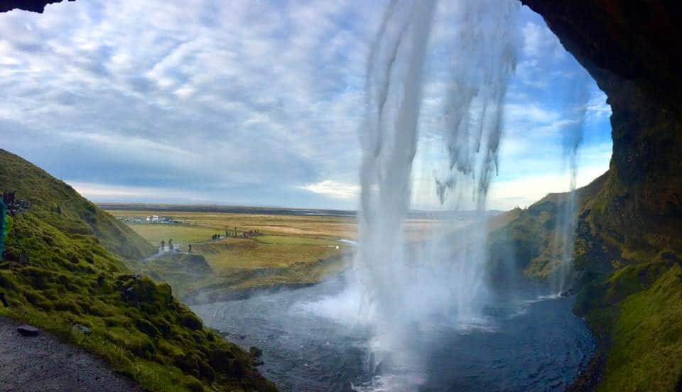 First stop, after getting petrol, was the iconic Seljalandsfoss Waterfall – absolutely breathtaking. However, only wearing the same amount of layers of when we flew from the UK, we shortly found that Iceland required a couple more, especially when we were able to walk around the back of the waterfall where you get a bit wet.