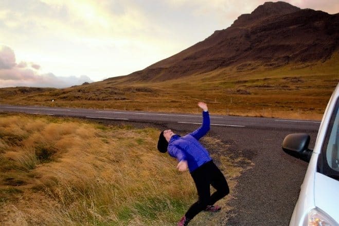 We knew a few sites south of Reykjavik we wanted to explore the next day, so we cut across the peninsula and drove as far as we could before darkness set in, making sure to heed the advice about holding onto the van doors in the wind.