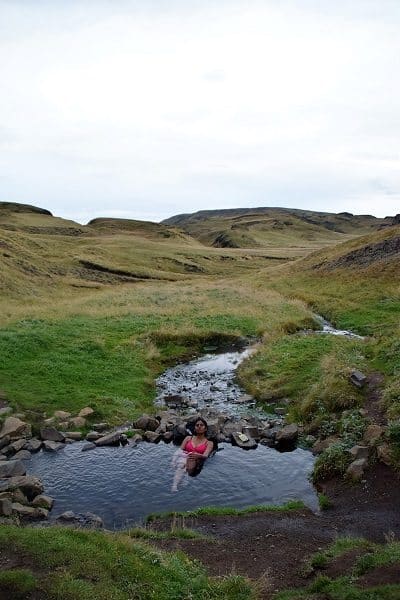 Travelling to Iceland and not taking a dip in one of the hot springs would be a sin. We couldn’t manage to find tickets online at Blue lagoon, so our alternative choice was a few hot springs we looked up on our way with a little detour.