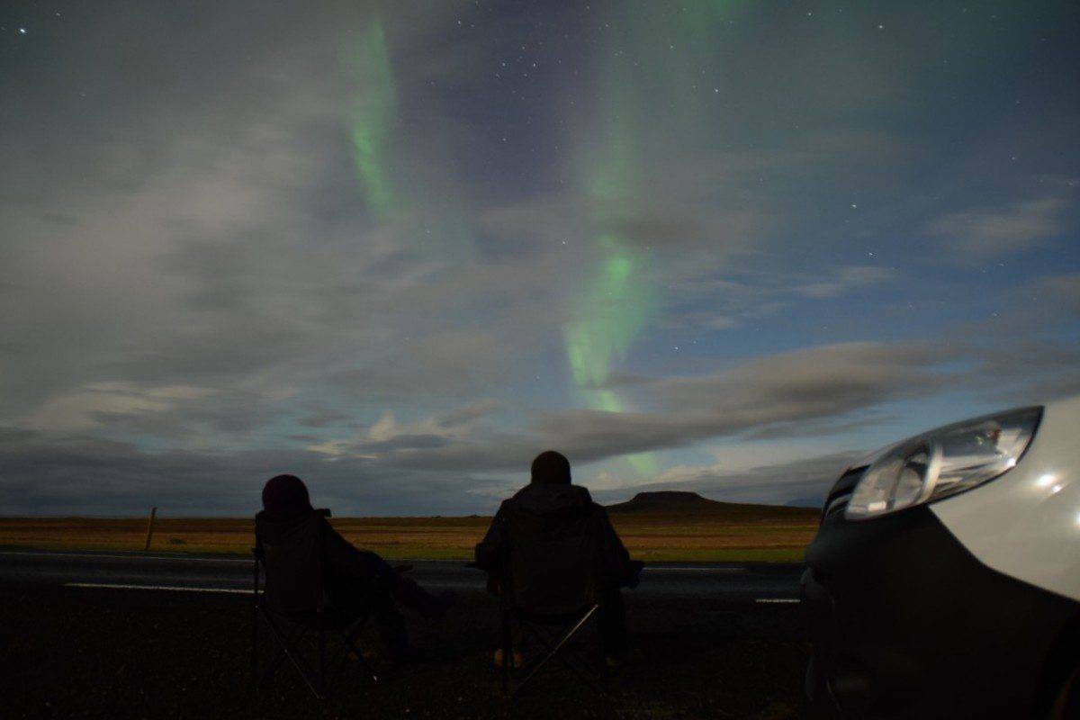 When we located a patch of clear sky, we found a large lay by and parked the van. Typical of Iceland, this place seemed to be in the middle of nowhere; pitch black, and a night sky strewn with distant stars. We decided to spend the night there, in eager anticipation of the Northern Lights. In about half an hour, what started hazily in whitish-grey, started transforming into an active, bright ribbon of color. We stepped out of our van into the biting cold realizing that the Northern Lights had finally made an appearance. Soon enough the night sky began to fill with a slew of shades of green and a tinge of pink. We sat there amazed, watching the enigmatic light show of the Aurora Borealis with awe, sipping on coffee, on that chill, unforgettable night. Finally the cloud cover ended the show around 3 in the morning.