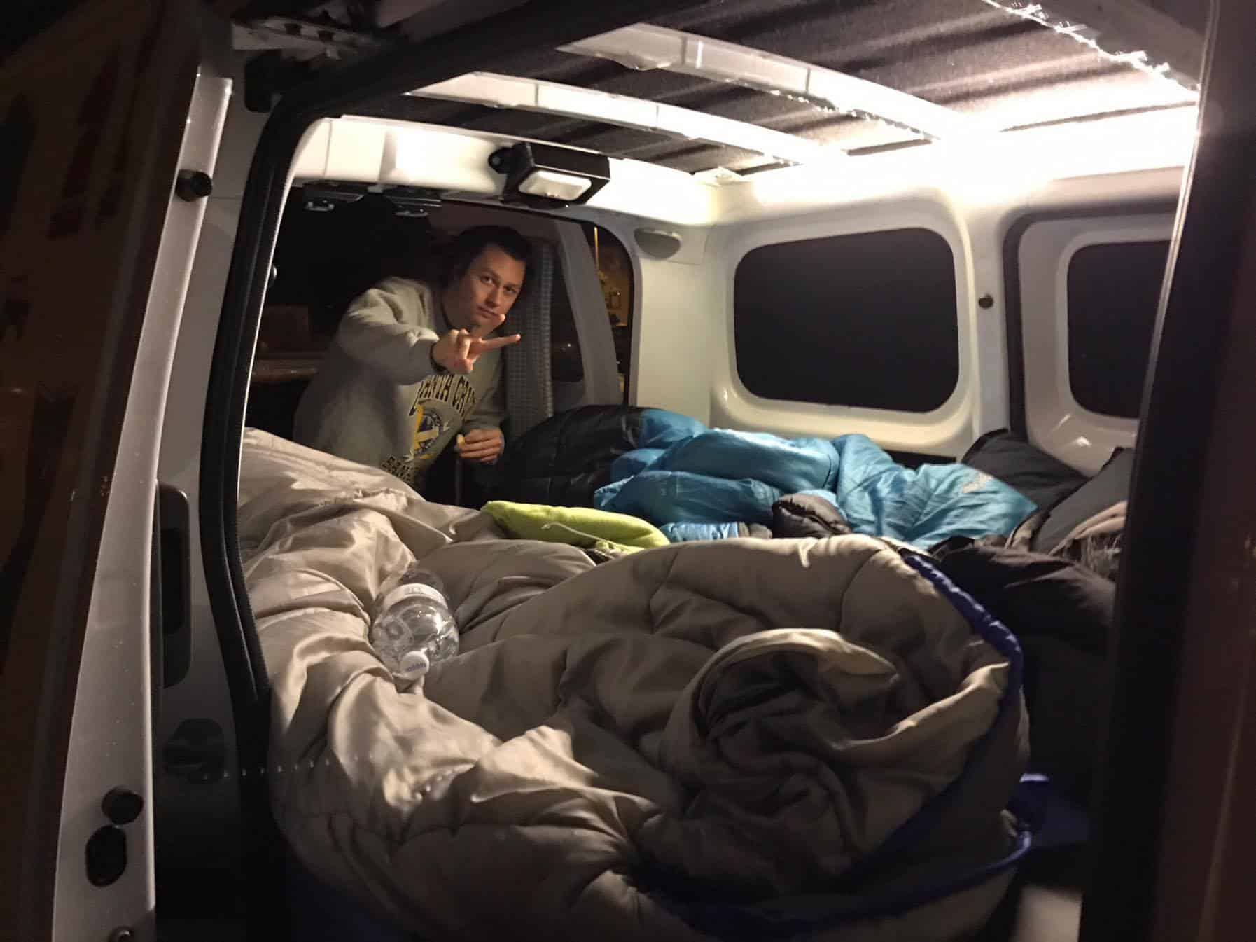 Our camper van came with what we needed to see everything on our journey. We rented the Renault Kangoo Camper which is perfect for two people. A large full sized bed was situated in the back. The sometimes frigid Icelandic winter was masked by the warmth of a heater that ran off a second car battery. We had free WiFi making it easy to use navigation and bluetooth speakers giving us full access to all of our music and podcasts. There was also cooking pans for when we wanted to make dinner with a view.