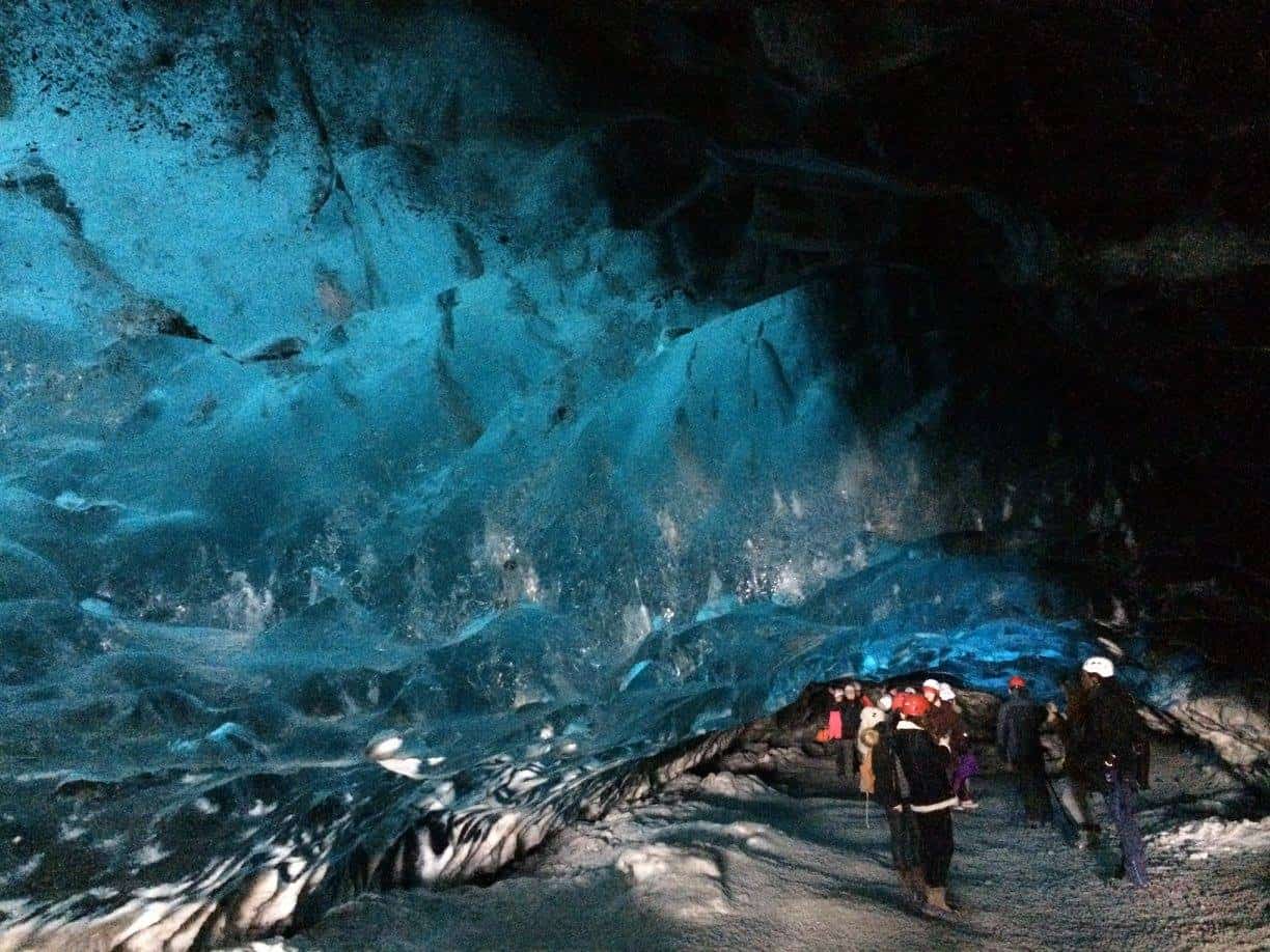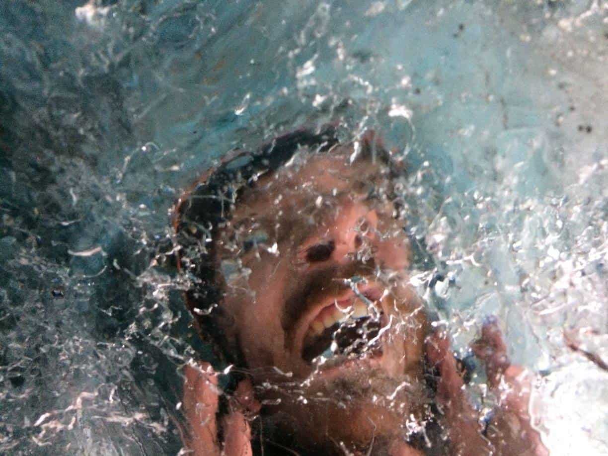 (Top) Inside the ice cave where the ice glows blue. (Bottom) We had a lot of fun sticking our head