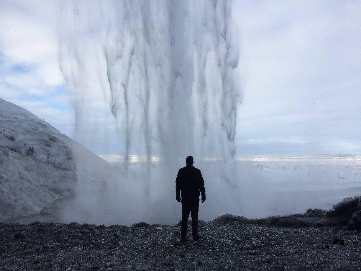 We woke up after a good sleep – maybe it was the rum, and maybe it was the warmer temperatures that night. We drove down the road to see Seljalandsfoss during the daylight. There were paths that led behind the waterfall, so we tackled those, getting completely soaked by the spray and being very careful not to slip on the layers of ice, which many other tourists were struggling hard with.