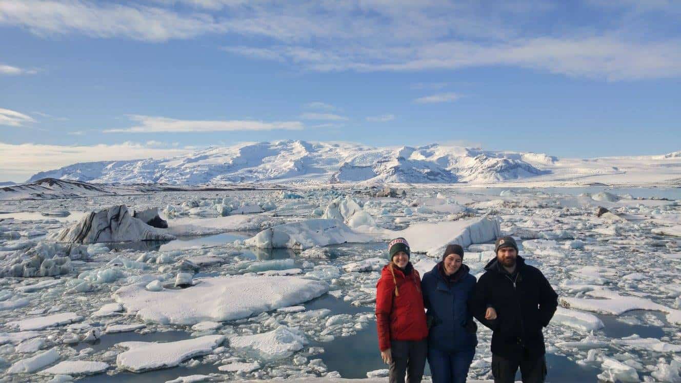 Chelsea, Liz and Aaron at the Glacier Lagoon. Continuing our streak of beautiful weather!