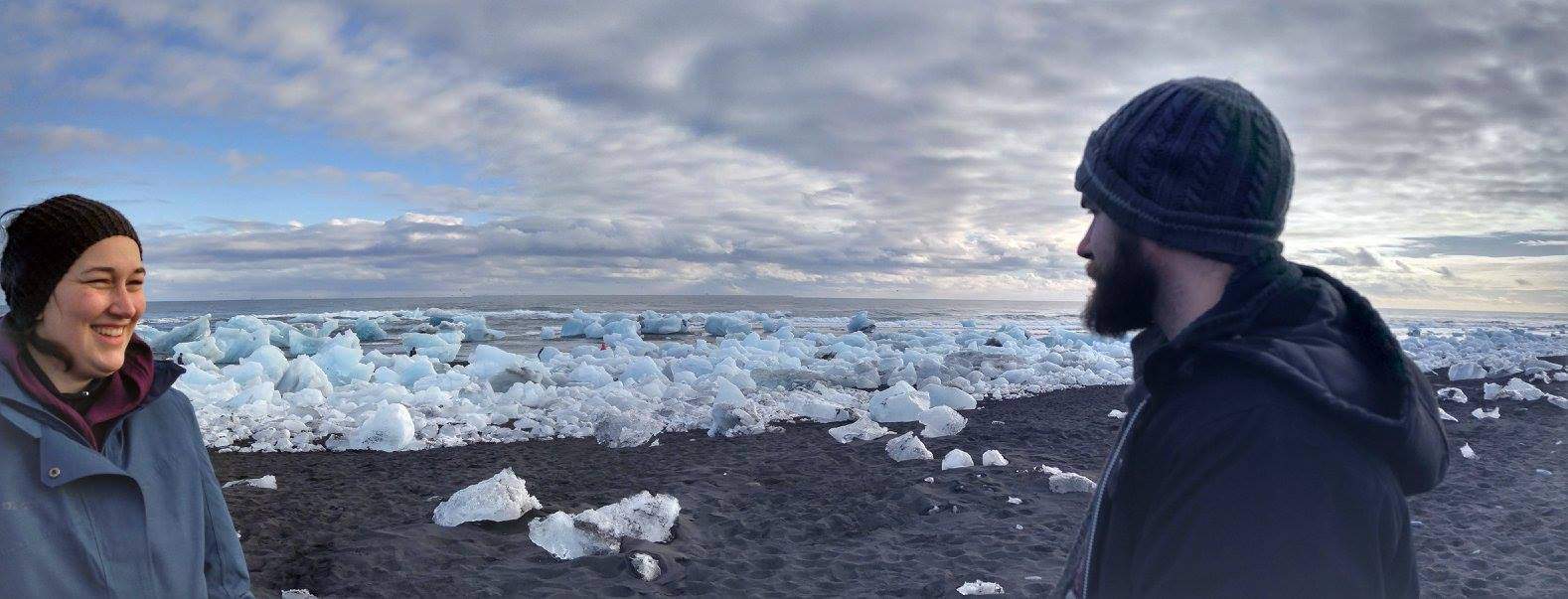 Liz and Aaron at Diamond Beach. Ice chunks as far as the eye can see!