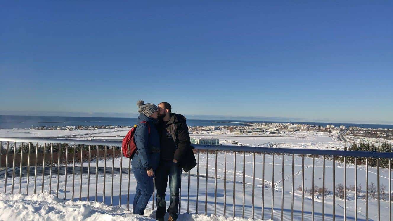(Top) Chelsea and Kevin overlooking views from the Perlan.