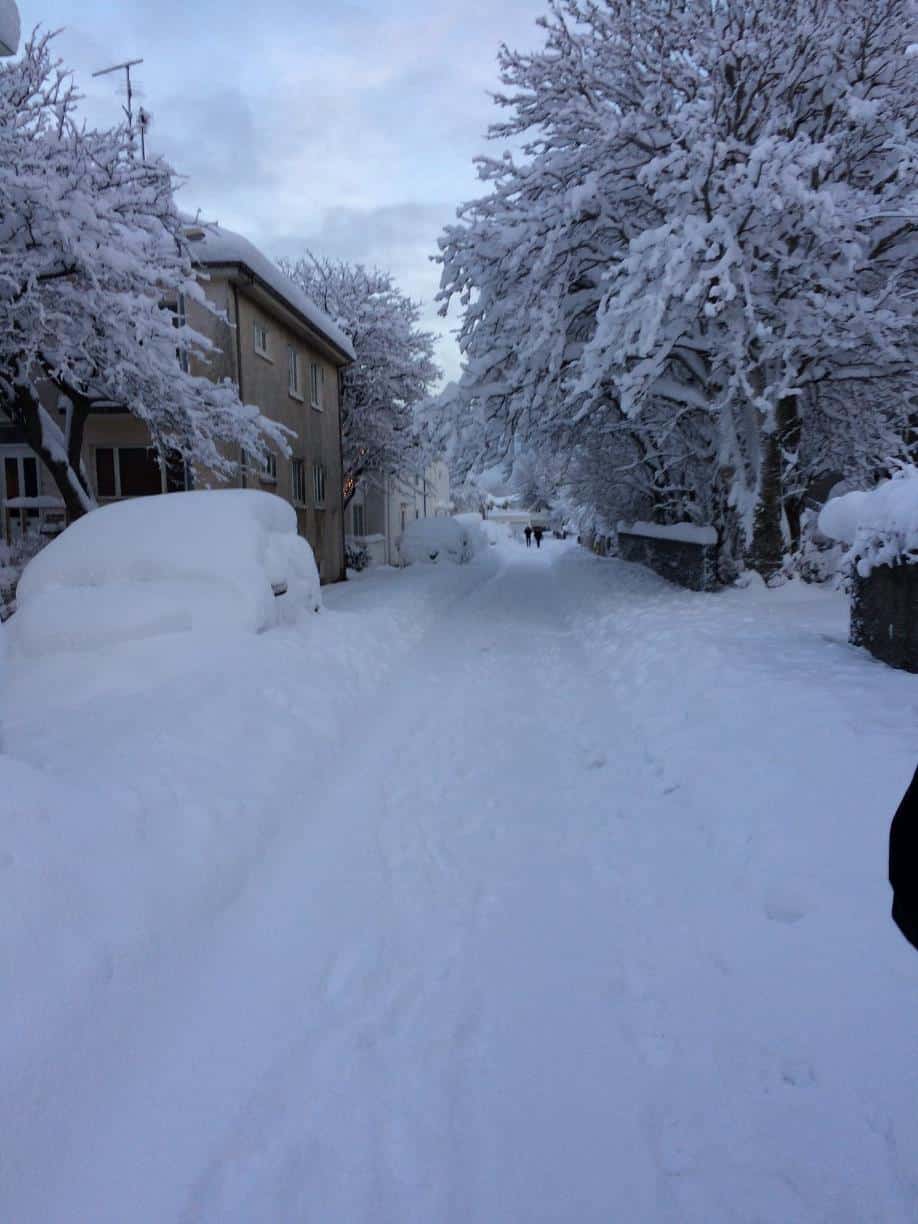 Leaving from Canada on Saturday February 25, where we are used to large amounts of snow and cold, it was still a shock to the system arriving in Keflavik at 4:00 am local time to a record snowfall! Iceland didn’t seem so prepared either. After retrieving our baggage, which was stuck in the snow for 2 hours, we knew our first stop was the duty free shop: stock up on rum and some new beers to try! We embarked on our FlyBus to Reykjavik at 6:30 am, arriving at the bus station in the dark and with snow drifting around the parked buses. In the pink hue of the morning, cold and in an unknown place, we were a little miserable. What better to do than to begin our adventure as soon as possible to lift our spirits! We stowed our bags in the lockers at the bus station (saviours!), grabbed a bite to eat in the cafe, and headed out into the snow as the morning gained light.