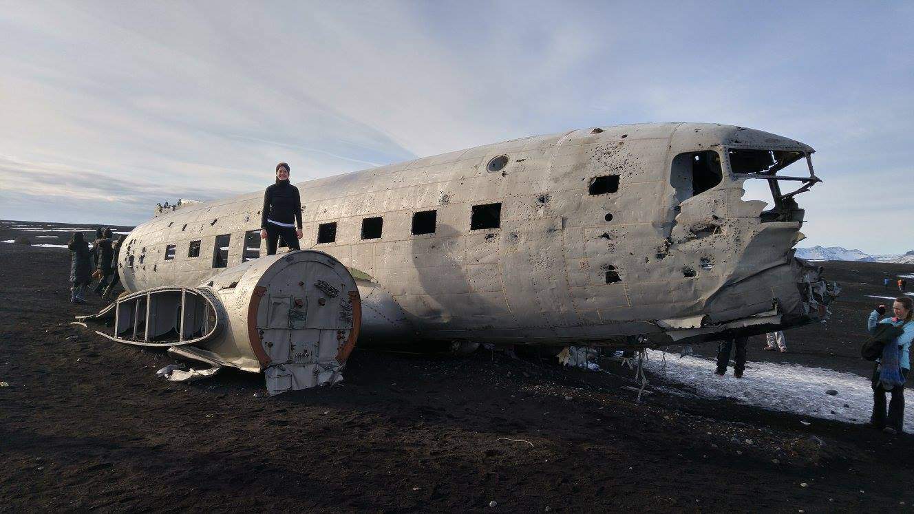 We dried off (again) and headed for the plane crash on the beach near Vik. The internet made this sound like a well-kept secret and the entrance to find it very difficult, so we drove past a huge parking lot three times before we figured out it had changed since the blogs we read were posted. Honestly, the hike to the crash site was terrible. An hour long down a featureless-black sandy-nothing to see-occasionally a big rock road, slowly getting further from the mountains and closer to the ocean (very slowly). We suggest an enterprising local could make a fortune ferrying people back and forth in a wagon! We got to the plane crash to find it covered in tourists, so we snapped a few pics and looked around inside, then continued on to the ocean.