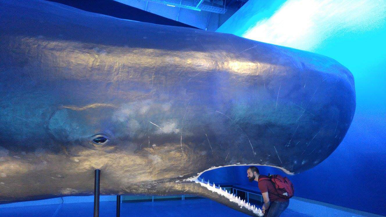 Aaron fully immersing himself in the Whales of Iceland exhibit.