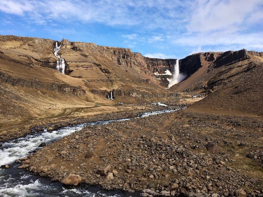 Started early in the morning since the weather was fine. And yes, there is nothing like waterfalls when there is a blue sky and sunshine! So, we went up for a little hiking trip at the colorful Hengifoss. The sound of the highest waterfall on Iceland and the sun was a perfect opportunity to have a break!