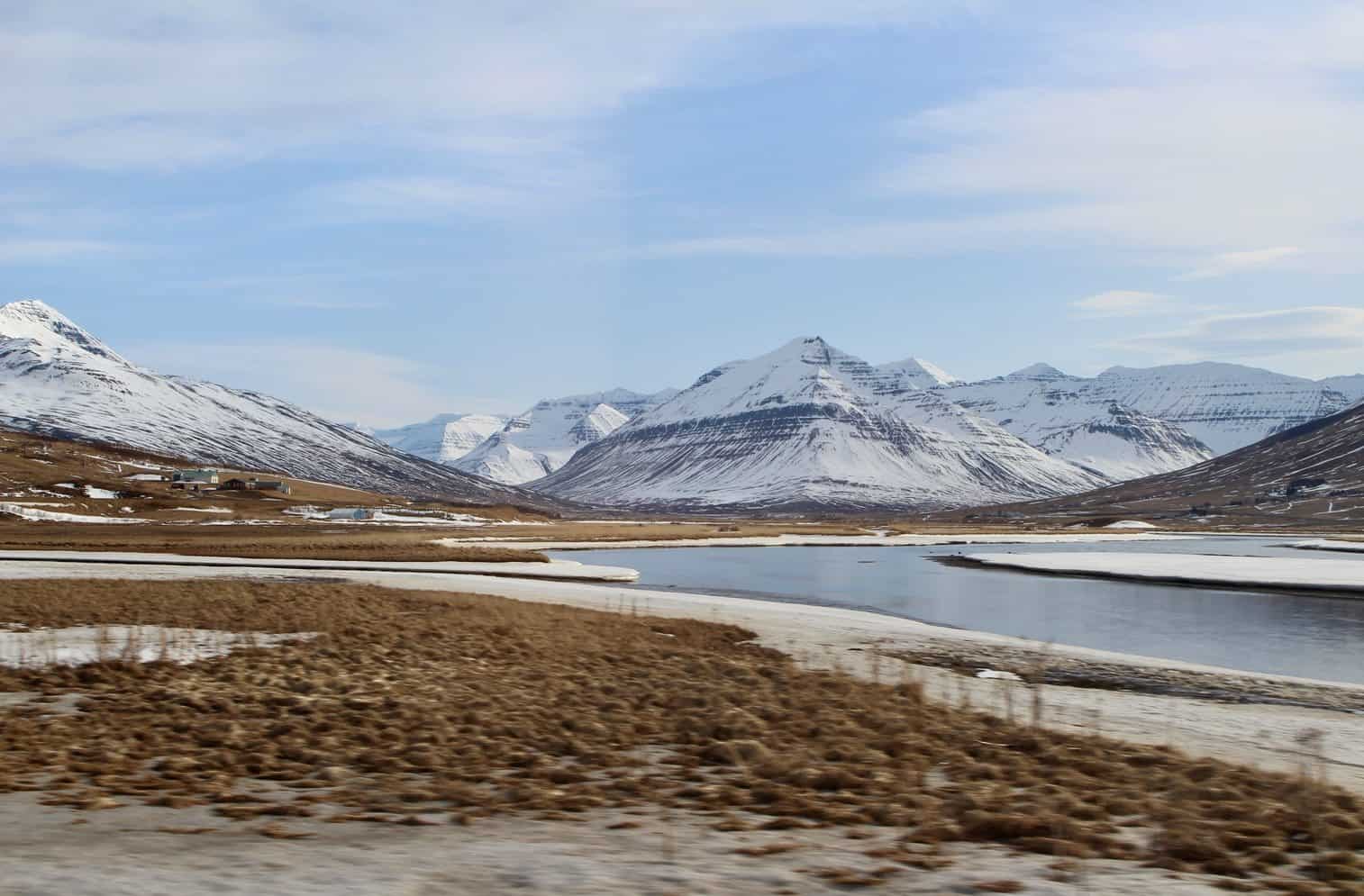 The highlight of the day came as we were about to reach our campsite. We saw a few campers parked and a big source of water, so we pulled over. The view was surreal, the sun was beginning to set and the water was a light shade of blue. We took a short walk up a walkway and found a winning view in þingeyjarsveit, which you can judge for yourself.