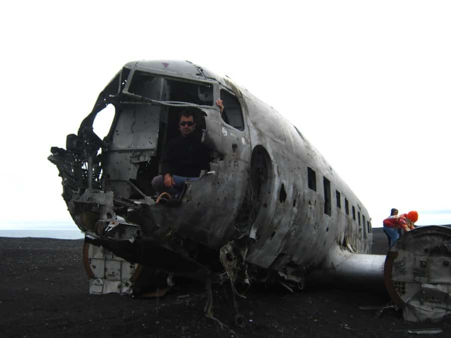 On the way to the cliffs of Dyrhólaey, we saw a lot of cars and vans parked, so we decided to stop and see what was there. We started to walk, and walk, and walk, following people, and after an hour, or so (we did not have clock), we discovered that the path led to a wrecked and abandoned plane, in the middle of the beach. Following the people, was certainly a mistake, because it was not worth the long walk to see that, although we took this curious photo.
