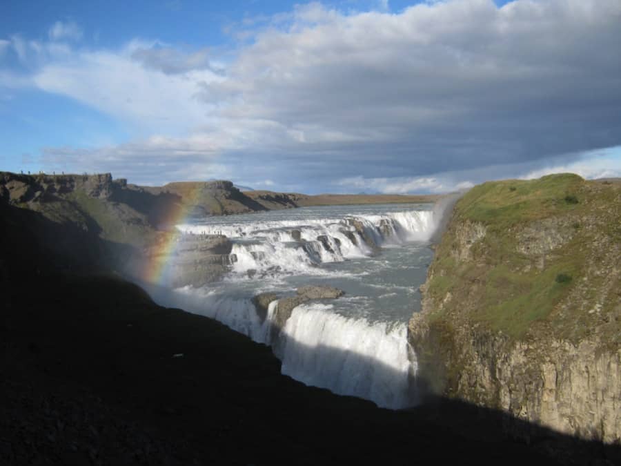 We then went to Gullfoss. A spectacular waterfall that, in our opinion, occupies the second place in the ranking of best waterfalls of Iceland. If it had been a sunny day, the rainbow would have reflected on the waterfall and it is very beautiful. You can also do a short route around the waterfall. In this place we met some Spaniards, who asked us if we could take a picture, we saw them almost every day during our trip. We could have watched the waterfall for hours, but our trip had to continue. There were a lot of beautiful sites waiting for us, and our trip had just begun.