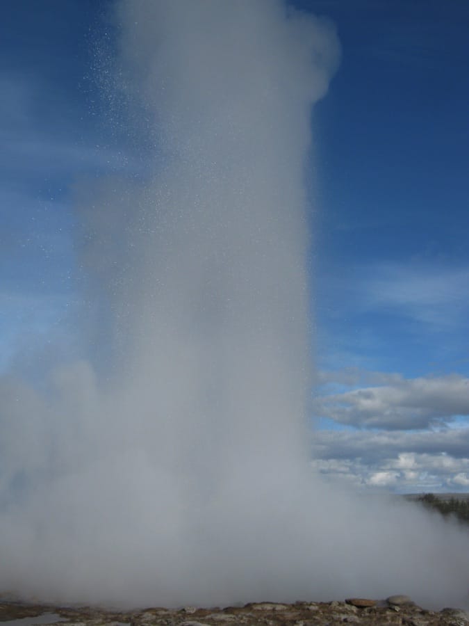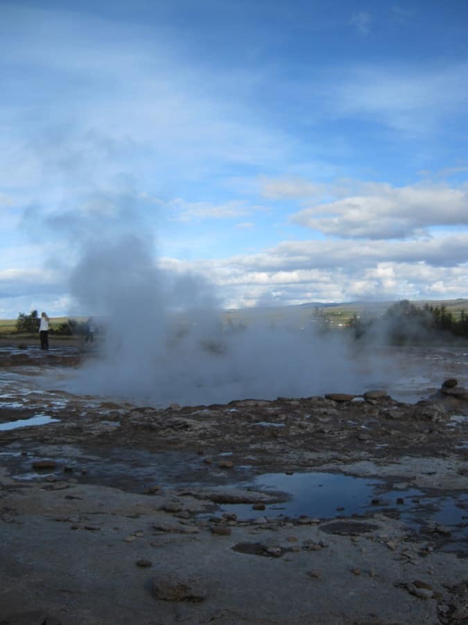 After this, we went to Geysir and Strokkur. In this site there was plenty of fumarolas with boiling water but there was one that was especially awesome, Strokkur. The geysir shoots out an incredible water-jet, about 20 meters high, every 4 – 10 minutes. It can be a bit dangerous, if you get too close as the water is too hot. Some of the fumarolas smelled a little sulfur, but nothing compared to other areas that we saw later on, where the smell was lot worse.