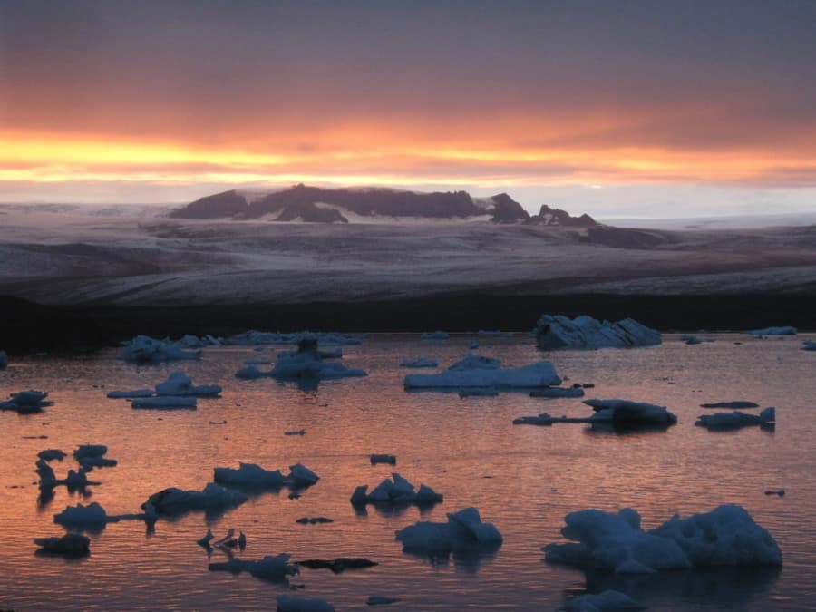 The next stop was Fjallsjökull glacier and after Jökuláarlón lagoon. In this place we lived a magical moment, that we will not forget in our life’s. It was dusk, and the sky was a bright orange. At the bottom, were the snow covered mountains lay, the glacier lagoon reflected the beautiful orange sky light. We were alone, surrounded with icebergs and at that moment, a seal came out to greet us. At first, it scared us a little bit, as it was very close, but after a while, when it returned to the water, we could see it swimming with its friends. We couldn’t take it a good photo, I need a better camera…