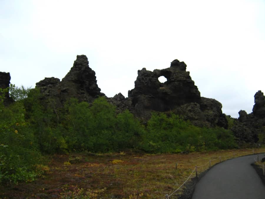 Another thing we went to see was Dimmuborgir, a place with rock formations. You could go for a walk and admire these peculiar formations, very similar to the cliffs, but on earth. Then we went to see Goðafoss. The third waterfall in our ranking. It was big and lovely because the water is a very nice blue. Every waterfall had its charm.