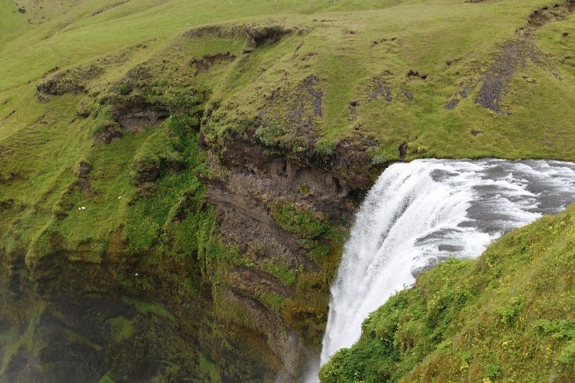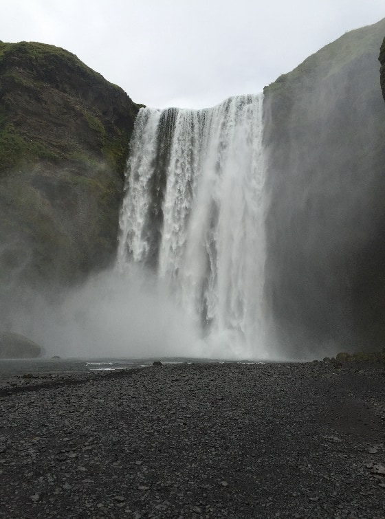 From here we drove to Geysir and watched in awe as the geyser erupted every 5 – 10 minutes. We must have watched it 3 or 4 times. Getting close was worth taking a little bit of spray! Our next stop was Gullfoss. It’s hard to overstate the power and beauty of the scenery at this waterfall. We were able to witness green mountains, rocky landscape, crushing water, and a rainbow, all in one view.