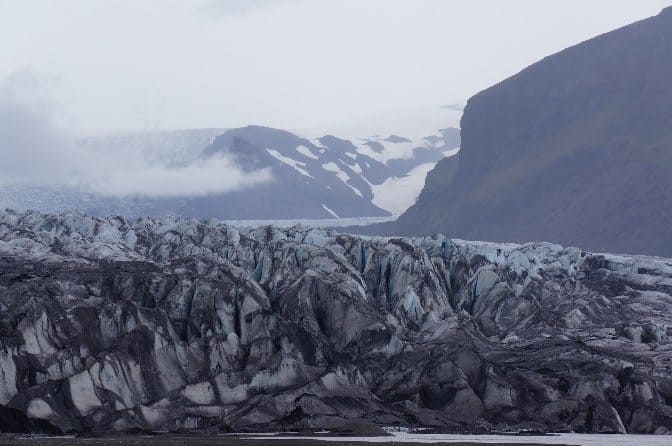 After jumping back in the car, we prepared ourselves for about another hour on the road. The 4G puck that came with the van made keeping ourselves entertained very easy. We were able to stream music from our phones and enjoy a good background soundtrack to the gorgeous scenery. Before we knew it we had made it Vatnajökull National Park. We enjoyed a great view of the glacier and made the hike up to see Svartifoss. Word to the wise: the hike is listed as “easy”, but it was pretty steep uphill for almost 2km to get there. Fortunately, it was drizzling out, so it wasn’t so obvious how much I was sweating when we got there!