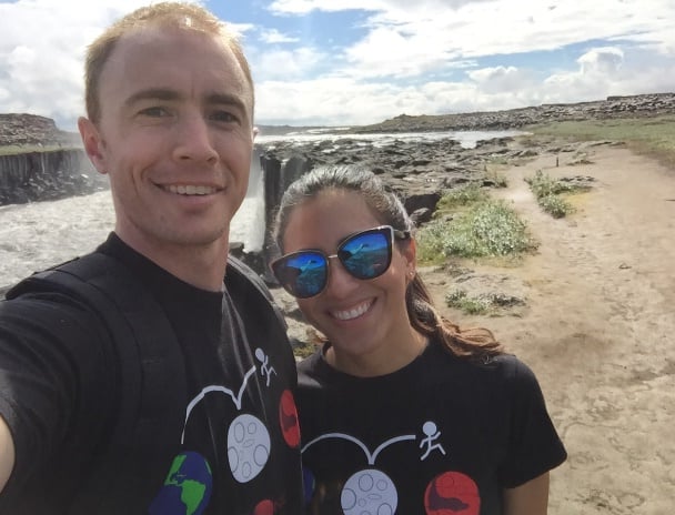 During the 1960’s when NASA was preparing to send men to the moon, the astronauts did part of their training in Iceland. It was thought that the volcanic conditions on Iceland would provide a good geologic training environment. With that in mind, Liza and I wore matching shirts for some of our pictures today!