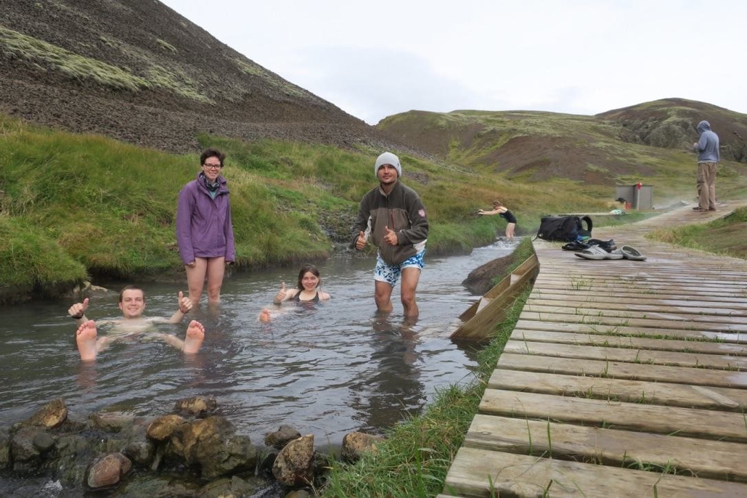 We spent whole day on this little island, which is by the way the home place of Júníus Meyvant, a great Icelandic songwriter and singer. Unfortunately we did not meet him in the streets but in a café we talked with a lady that knows him! Almost as good as meeting him. We had lovely fish in a pan in the local fish restaurant, we petted local superstar puffin Toti and left the island with hearts full of joy. Our circle was coming to a close so for the last day we decided to relax and enjoy some time in the little town Hveragerði and early in the morning set out for a short hike to bath in the Reykjadalur valley and its thermal river! What a thing!