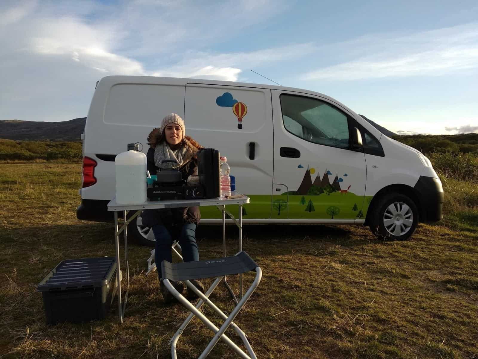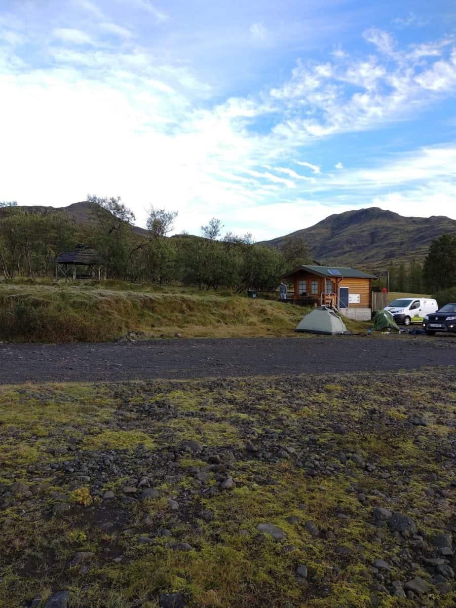 Finally we reached Haukafell campground, a wet patch of grass with clean toilets and sinks but with no one there. It was foggy so we couldn’t see anything past the little toilet hut and some sheep that were curious to see who had arrived. Feeling a bit confused and a bit anxious we started our dinner prep, suddenly another car appeared, we had company, and were a bit more relaxed we are not the only ones there. The surprise came in the morning, we woke up to a sunny day, our surroundings was the mountains waterfalls and glacier of the national park and 6 other cars had arrived during the night. This campground was pretty incredible, so close to the reserve, and to think we were nervous about it at night.