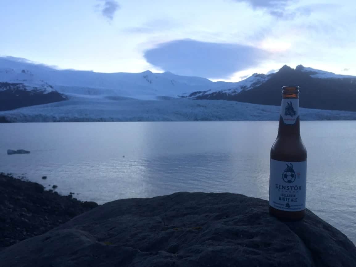 When we came back to our parking spot sun was almost gone, but there was still sunlight enough to went for short walk and drank our favorite Einstök White Ale beer with wonderful view to the glacier.. When we came back to the camper we sat outside of the car and watched the glacier silently – that was one of the most powerful moment in our lives.