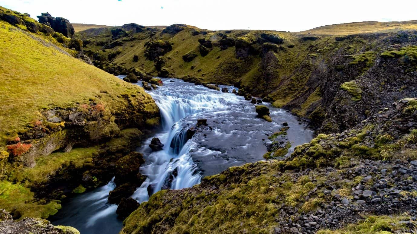 Today we had a good sleep in and went to the Skógafoss waterfall, we didn’t realize than we had camped about 100 meters away from the falls that night, since we arrived in complete darkness and very exhausted. Another amazing waterfall. We hiked about 7km quite slowly with Rob taking photos along the rugged valley.