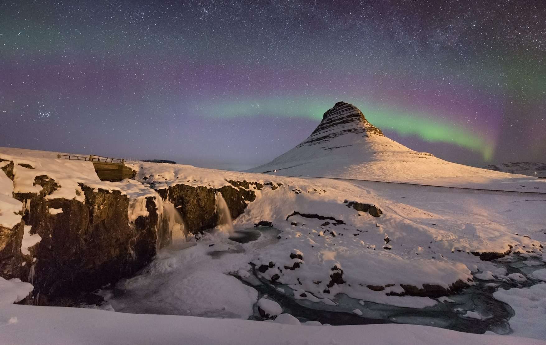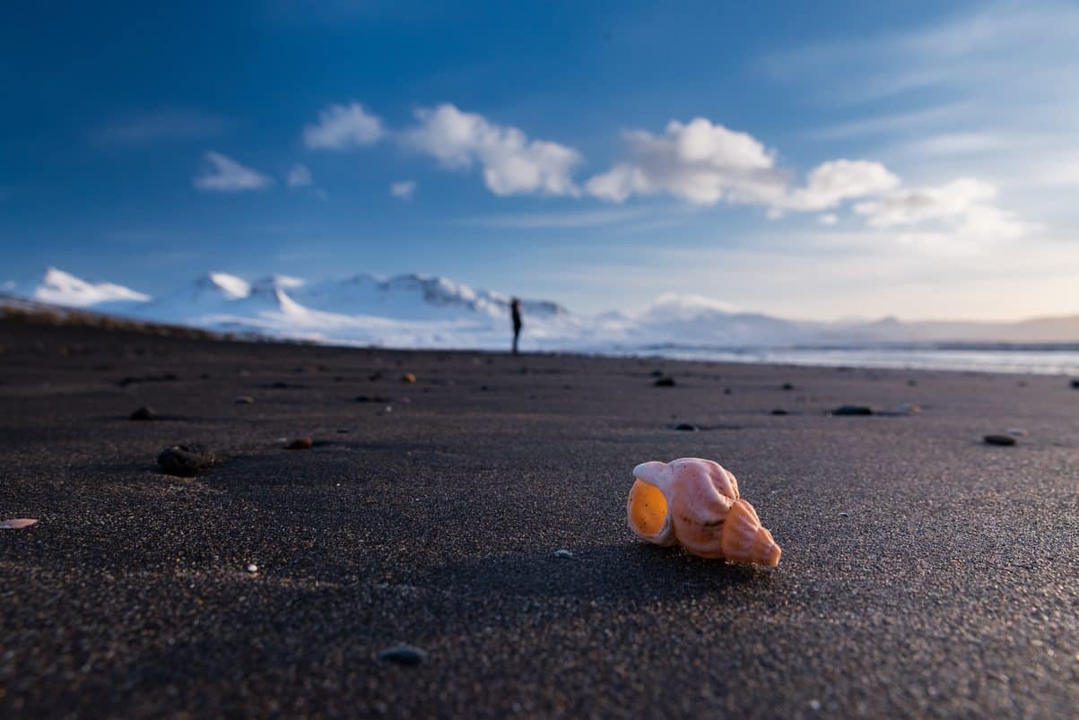 Started the morning walking on the frozen beach at Hvitserkur (if you look closely you can see the dragon taking a drink). While walking the beach we were being watched by pod of seals. Our next destination was the Snæfellsness Peninsula. We stopped at Kirkjufell with plans to return for sunset in a few hours. While the sun began to set, we walked along the beach at Brimilsvellir and found it to be covered with beautiful shells and agate encrusted rocks. Kirkjufell was magnificent in a pink and orange sky and we ended the evening driving around the far end of the Peninsula to an ocean overlook in Hellnar. We were in a solid routine of making dinner late at night in the comfort of our van. While cleaning the dishes after dinner, we were blown away to look up and see the splendor of the Aurora Borealis dancing in green and pink streams across the sky. It was a huge check off of both our bucket lists.