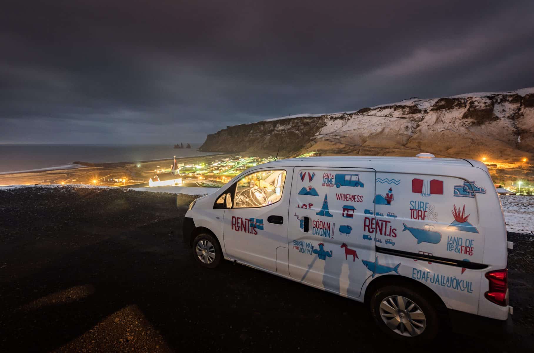 At 22:00, we pulled into Vik and found the perfect place to camp. Feeling spoiled to be the only ones enjoying the beautiful view of town, we made dinner and relished in the comfort of our toasty warm WiFi enabled camper van.