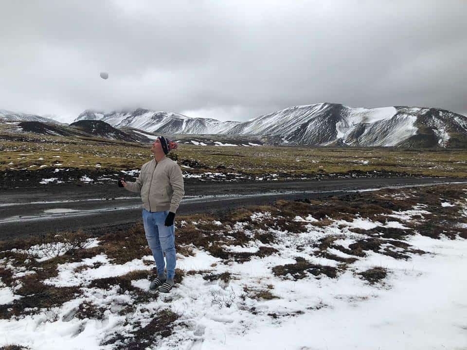 We also headed about half an hour our of Reykjavik to these other snowy mountains we had seen the day before – they were covered in snow so we parked our van and played around a bit. With so many beautiful sites to see, it may seem odd that we chose to simply play in snow but to us it is very foreign and quite exciting.