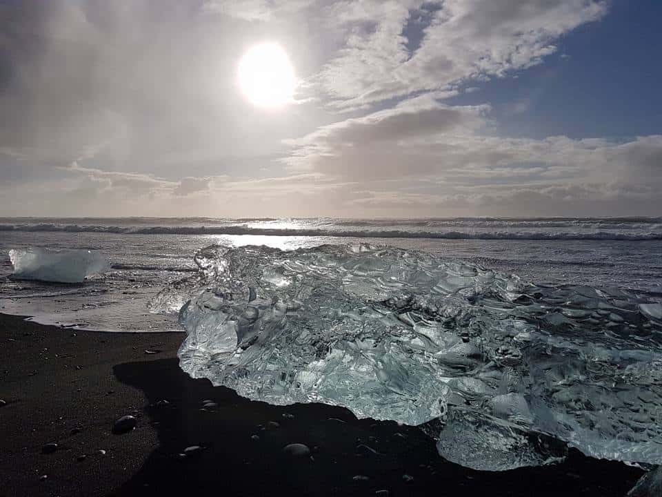 After all the basalt columns we had seen, this was still very beautiful and surprising! On reaching the Glacier lagoons (there is a smaller one before the big, famous one), there were very low clouds but since we were planning to camp there we waited for the clouds to clear and the amazing view behind the lagoon opened up to reveal the true beauty of the place! The scenery is so jaw-dropping that the background looked like it must be CGI!!! We walked around and admired the view for a long time before retiring to the van for the night to await the next day.