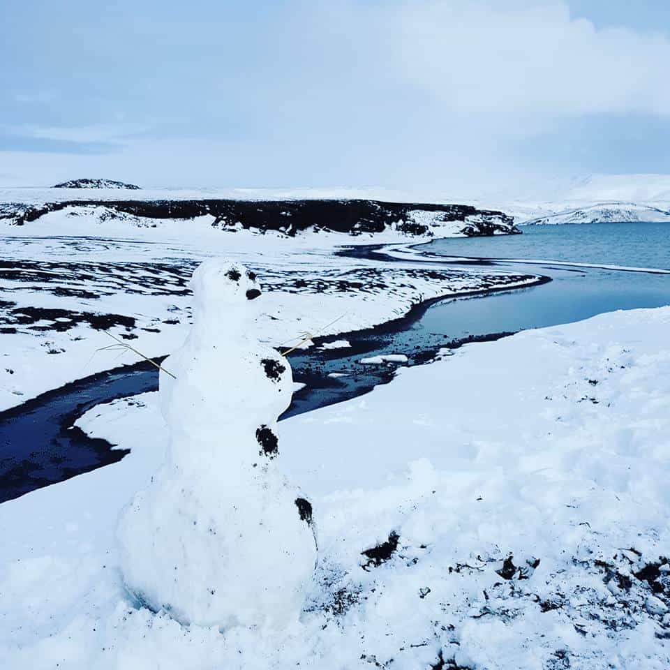 Anyway, after seeing a snowy Blue Lagoon we headed back up towards Reykjavik alongside the Kleifarvatn lake. We decided to stop here for a bit since the view was fantastic, the weather had somehow become sunny, and there was lots of snow! We then realised we hadn’t seen this much snow in the UK for a few years, so we just HAD to make a snowman! After embracing the cold it was time for some warmth, so we headed to the Seltún geothermal area and after that went up to Rekjavik.