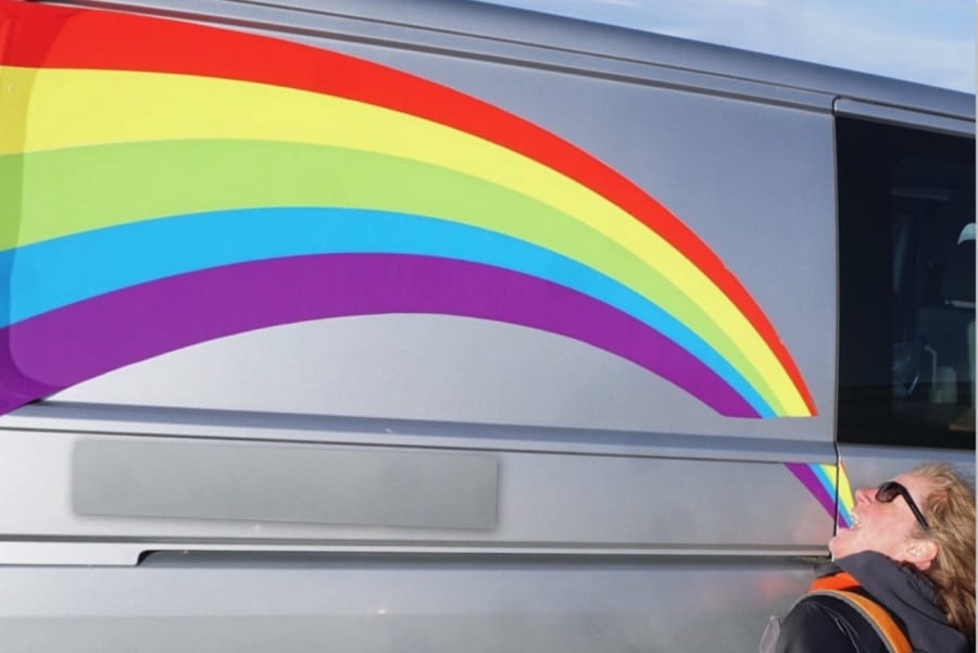 The same volcano that violently cast rocks the size of a hippies’ VW bus into the sky now heated fissures that warmed the waters of this serene resort Jarðböðin. It was now time to make a dash for the civilized part of the country, but not without expressing their feelings about a lesser travel van company they spotted along their route.