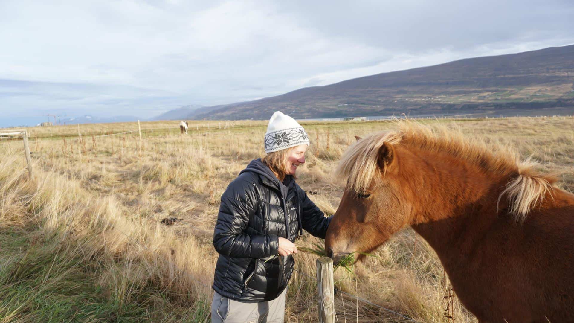 A campground called Hamrar (see above pic) was located easily in Akureyri. Modern facilities made the stay here comfortable. Arctic bunnies scampered around at night. Wild horses chomped grass in the morning. These features made the cold evenings seem like a small price to pay.